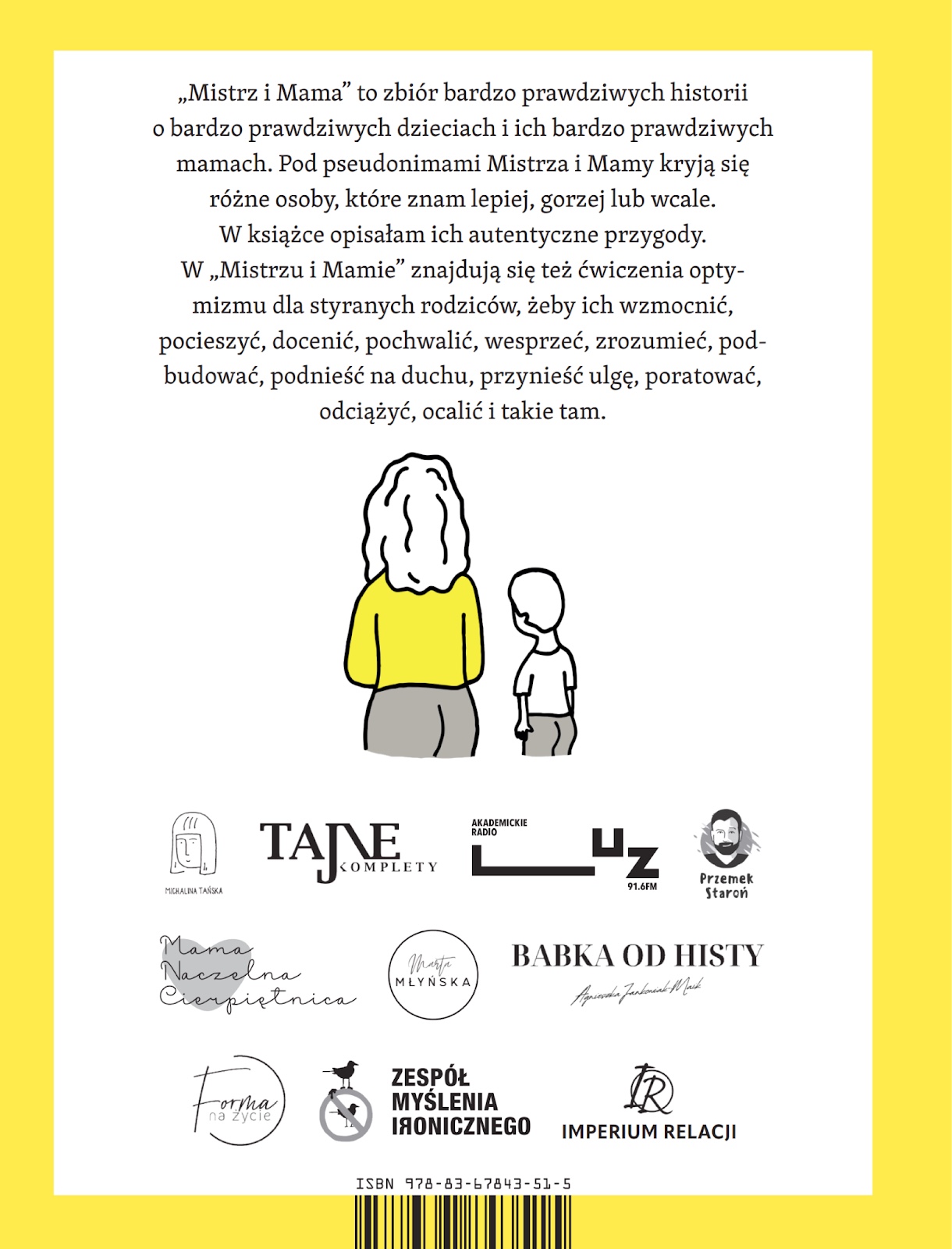 „Mistrz i Mama” to zbiór bardzo prawdziwych historii o bardzo prawdziwych dzieciach i ich bardzo prawdziwych mamach. Pod pseudonimami Mistrza i Mamy kryją się różne osoby, które znam lepiej, gorzej lub wcale. W książce opisałam ich autentyczne przygody. W „Mistrzu i Mamie” znajdują się też ćwiczenia optymizmu dla styranych rodziców, żeby ich wzmocnić, pocieszyć, docenić, pochwalić, wesprzeć, zrozumieć, podbudować, podnieść na duchu, przynieść ulgę, poratować, odciążyć, ocalić i takie tam.
